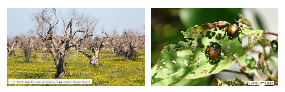 Parmi ces organismes, on retrouve par exemple la bactérie responsable du feu bactérien Erwinia amylovora qui est considérée comme un organsine de quarantaine dans certaines zones protégées.