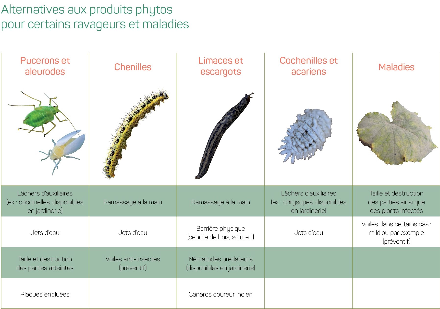 - Les méthodes biologiques englobent l'utilisation de macro-organismes, pour lesquels vous trouverez plus d'infos plus bas dans cette section ;