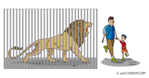 Par contre, dans un zoo, le risque est proche de zéro. En effet, le lion est toujours aussi dangereux mais étant enfermé dans sa cage nous ne sommes pas exposés à son attaque, il ne pourra plus nous atteindre.
