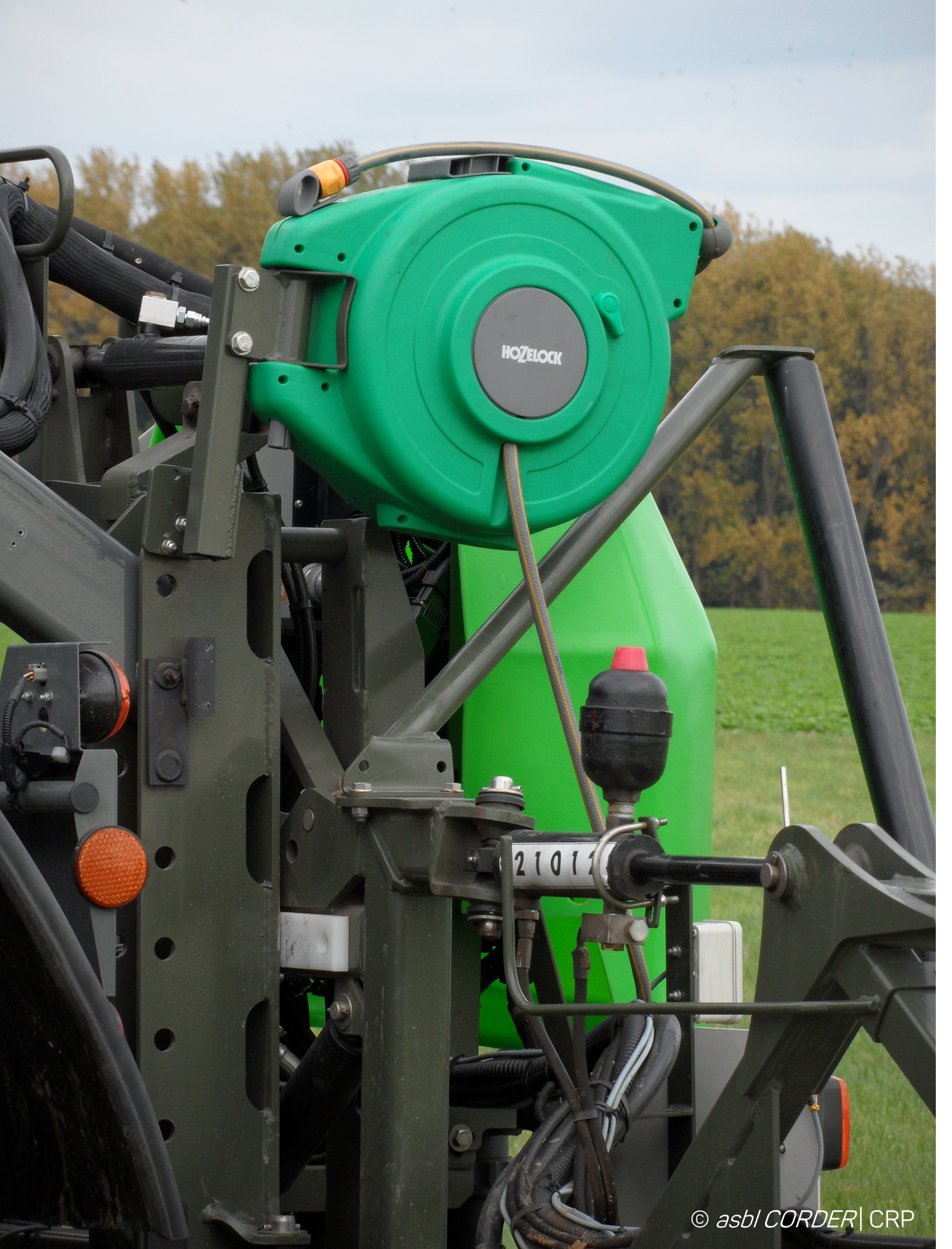 Pour les opérations de rinçage et de nettoyage de la cuve ayant lieu au champ, une cuve d’eau claire doit être embarquée ou connectable.
