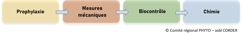 Les préoccupations pour la préservation de l’environnement et de la biodiversité étant grandissantes, la lutte intégrée contre les ennemis des cultures, également désignée par le terme IPM pour « Integrated Pest Management », est obligatoire pour tous les professionnels. Elle promeut la combinaison des méthodes non chimiques de lutte avec un apport en produits phytopharmaceutiques ( PPP ) (méthode chimique) en dernier recours. Un traitement phytosanitaire aura donc lieu si nécessaire, au bon moment et à la bonne dose, si aucune des mesures alternatives n’a pu contrôler l’agent pathogène ou indésirable. Ces mesures sont issues de la Directive européenne 2009/128/CE qui a pour objectif de parvenir à une utilisation des pesticides compatible avec le développement durable. Le Programme Wallon de Réduction des Pesticides ( PWRP ) et le plan national NAPAN (Nationaal Actie Plan d’Action National) ont été mis en place en 2013 afin de répondre aux exigences de cette directive européenne au niveau wallon et belge.