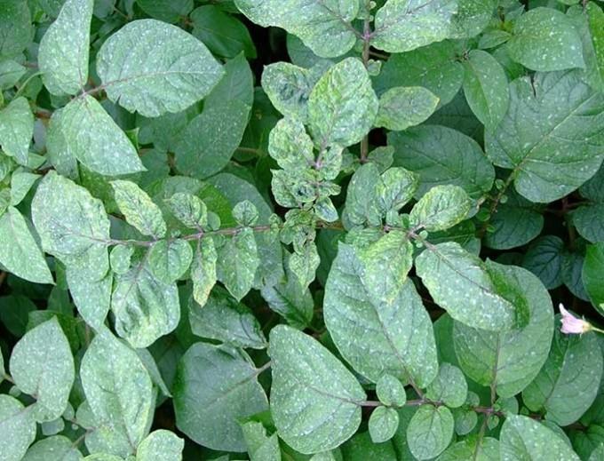 De la poudre blanche ou grise est souvent synonyme de la présence du mycélium de champignons, comme dans le cas de l’oïdium, une maladie pouvant s’attaquer à de nombreux végétaux dont les cultures légumières ; ou encore le mildiou, notamment en pomme de terre.