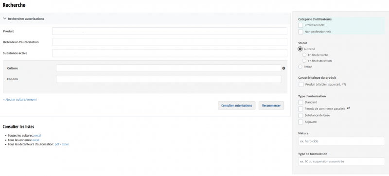 La nouvelle version offre de nouvelles possibilités et facilités en matière de filtres de recherche. De nouvelles informations sont plus facilement accessibles (produits en cours de retraits, produits à faible risque, substances de base...) Vous pouvez ainsi mieux affiner votre recherche de