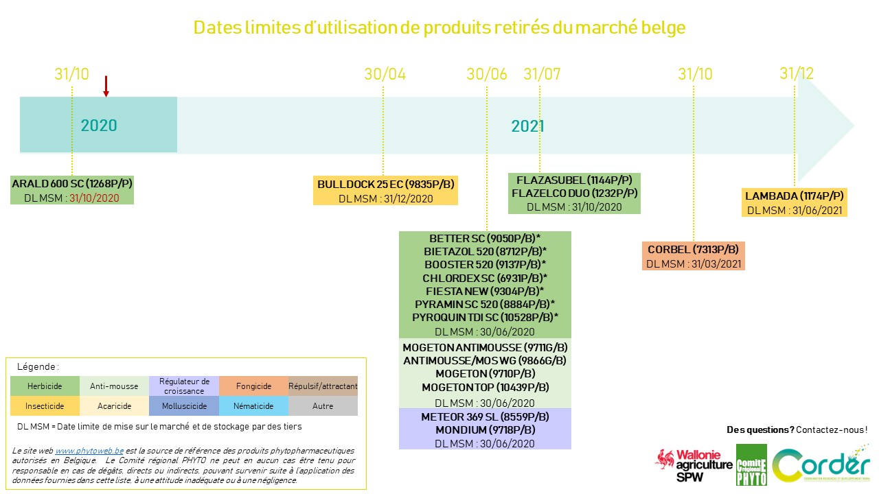 Plusieurs produits de commerce parallèle sont retirés du marché suite au retrait par le détenteur de permis (ARALD 600 SC et LAMBADA) ou parce que le produit de référence a été retiré du marché (FLAZASUBEL et FLAZELCO DUO).