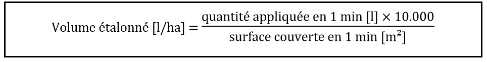 Pour traiter efficacement une surface (en mètres carrés) avec un produit autorisé à une dose donnée (en l/ha ou kg/ha ou kg/hl), l’applicateur devra mettre V litres d’eau dans la cuve du pulvérisateur avec Q litres ou kilogrammes de produit.