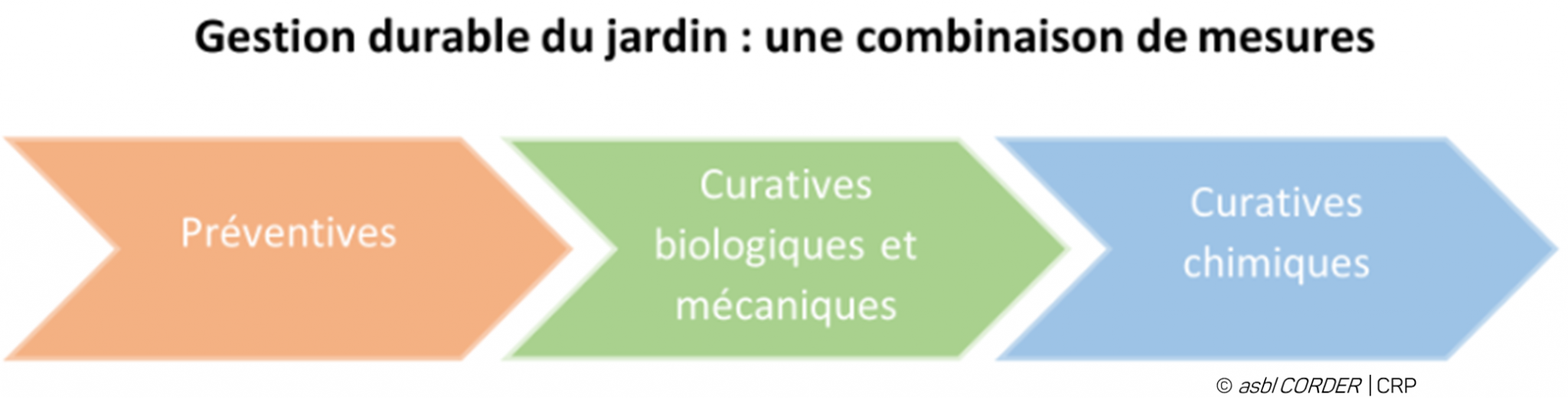 - de « mesures préventives » (c’est-à-dire avant l’arrivée de la maladie/insecte/herbe indésirée) permettant donc de limiter les interventions par la suite. Promouvoir la biodiversité dans son jardin et réfléchir à l’aménagement de vos espaces verts afin de limiter le développement d’organismes indésirés sont des exemples de mesures préventives pour lesquelles vous trouverez plus d’informations ci-dessous ;