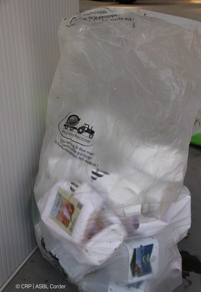 Les emballages de PPP vidés de leur contenu doivent avoir été rincés 3 fois à l’eau claire et séchés. Ils se trouvent dans des sacs AgriRecover fermés. Ils sont disposés de façon à ce que les emballages et matériaux contaminés ne se déversent pas par accident ou n'entrent pas en contact avec d'autres produits, substances ou matières.
