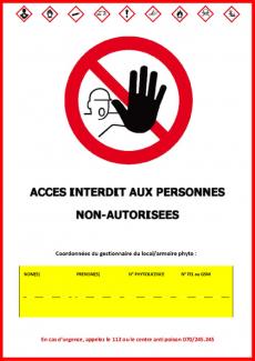 - Le local est fermé à clé et l’accès est réservé aux titulaires d’une phytolicence P1, P2, P3 ou toute personne accompagnée d’un titulaire d’une telle phytolicence ;