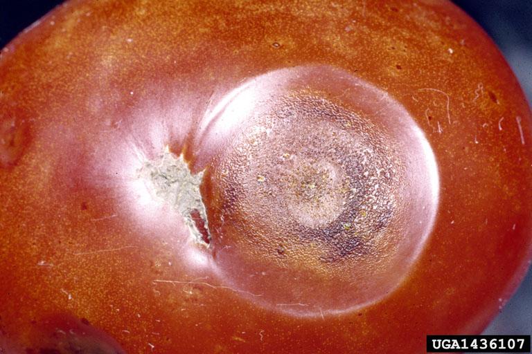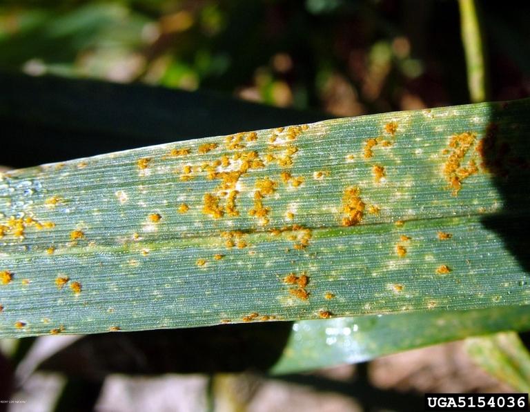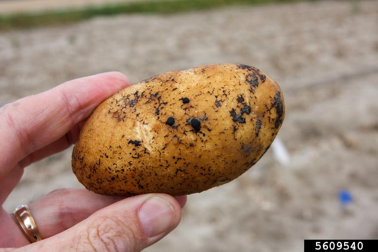 Les structures fongiques peuvent également apparaitre sous forme de pustules, orangées, brunes ou jaunes sur la face inférieure des feuilles dans le cas des rouilles des céréales ou des fruitiers, ou brunes/noires sur les tubercules dans le cas du rhizoctone de la pomme de terre.