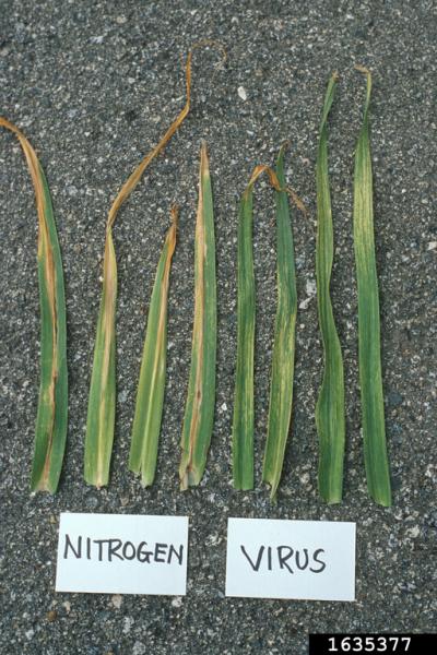 De manière générale, les virusphytopathogènes causent un jaunissement (chlorose) des feuilles, pouvant prendre divers aspects : chlorose diffuse, chlorose en mosaïque, chlorose le long des nervures... Les déformations des feuilles (gauffrements, distorsions, etc.) ainsi que le nanisme des plantes touchées sont également symptomatiques des maladies virales.