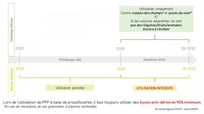Etant donné les problèmes que peuvent provoquer ces PPP sur les cultures avoisinantes, les usages de tous les PPP à base de prosulfocarbe seront dorénavant restreints, tout en tenant compte de la place importante de cet herbicide dans la lutte contre certaines graminées annuelles résistantes.